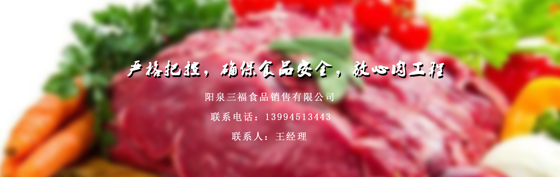 陽泉三福食品銷售有限公司成立于二零零六年九月,位于陽泉市城區桃南中路28號,資質為一般納稅人,是政府批準的合法具有外調肉類的單位之一。在2012年獲得中國人民銀行頒發的AAA機構信用代碼證?,F主要提供以下供貨渠道: 1、 冷鮮肉類的批發 2、 凍貨...